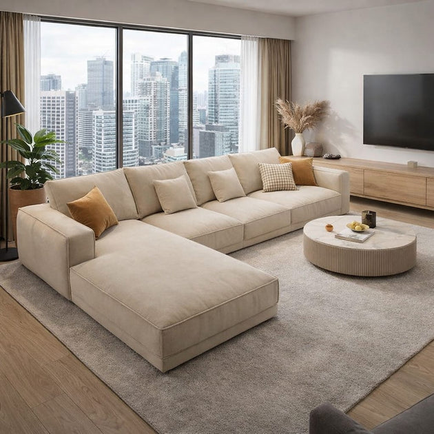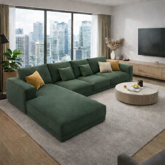 Modern Velvet L-Shape Sectional Sofa with Chaise Lounge – Luxury Upholstered 4 Seater Couch for Living Room