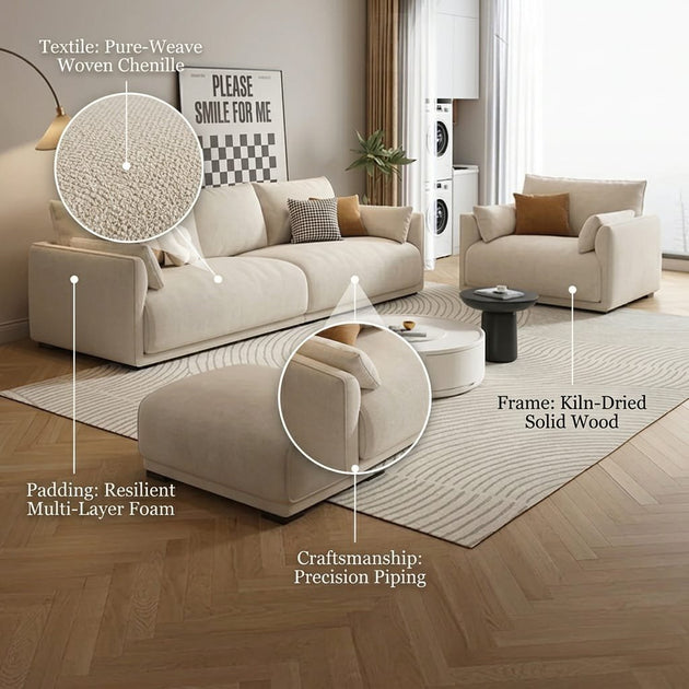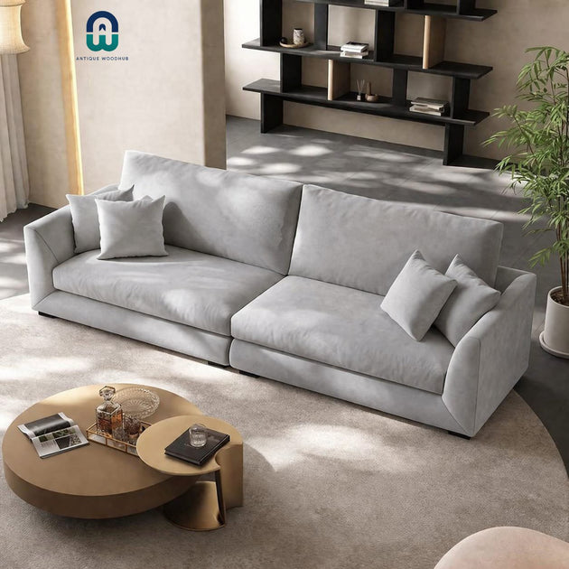 Modern Classic 4 Seater Sofa Set with Ottoman Luxury Living Room Furniture Comfortable Sofa: Antique Wood Hub