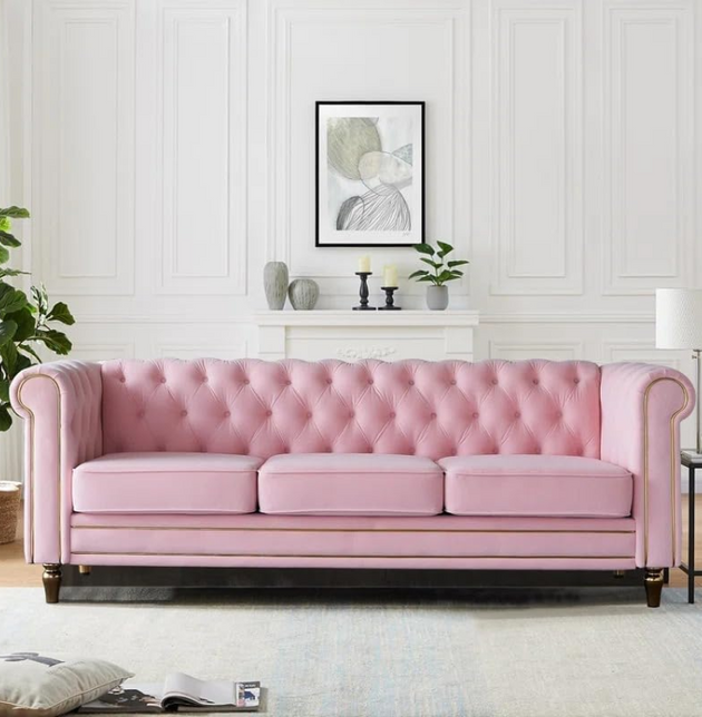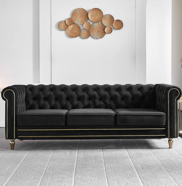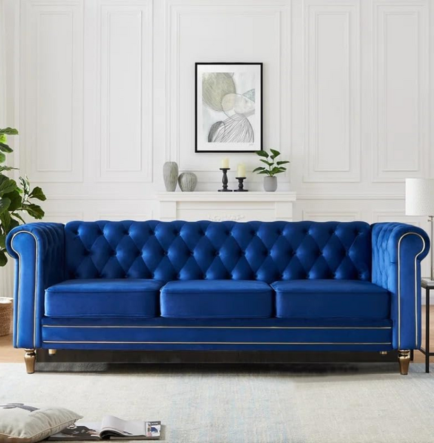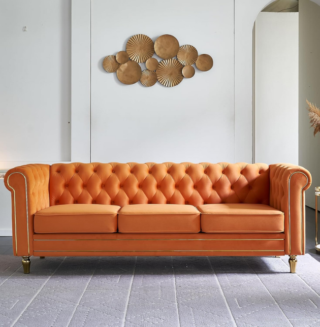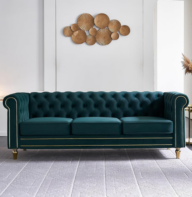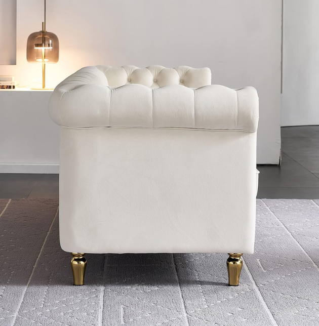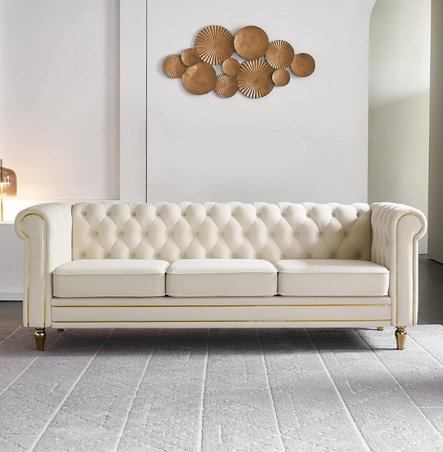 Luxury Chesterfield Velvet Sofa 3-Seater | Tufted Design, Gold Accents, Beige Velvet Upholstery | Living Room, Bedroom, Office Furniture: Antique Wood Hub
