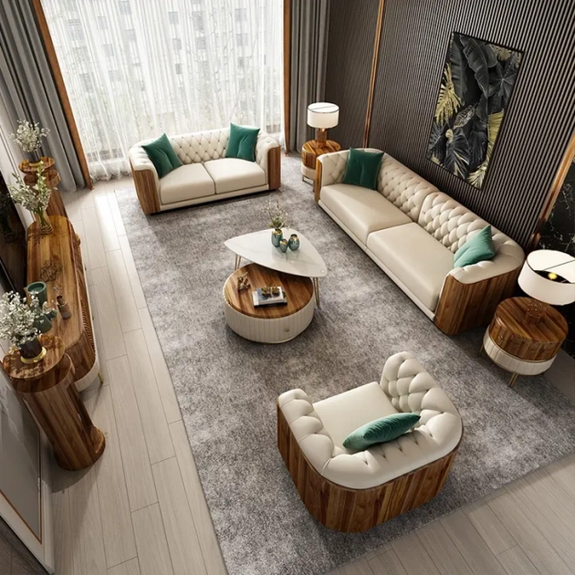 Modern Classic 4 Seater Sofa Set with Ottoman Luxury Living Room Furniture Comfortable Sofa: Antique Wood Hub