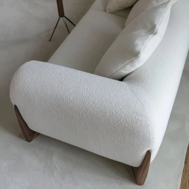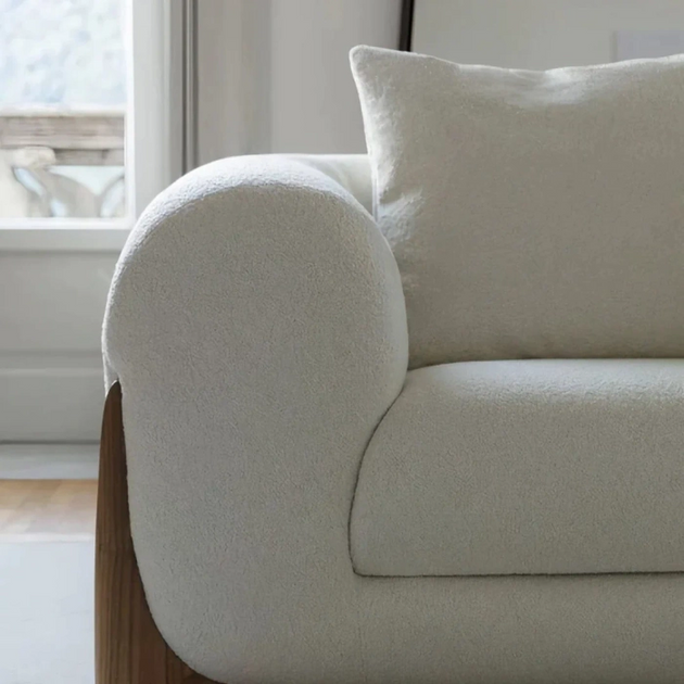 Modern Curved Upholstered Sofa with Pillows Boucle Premium Fabric Off White