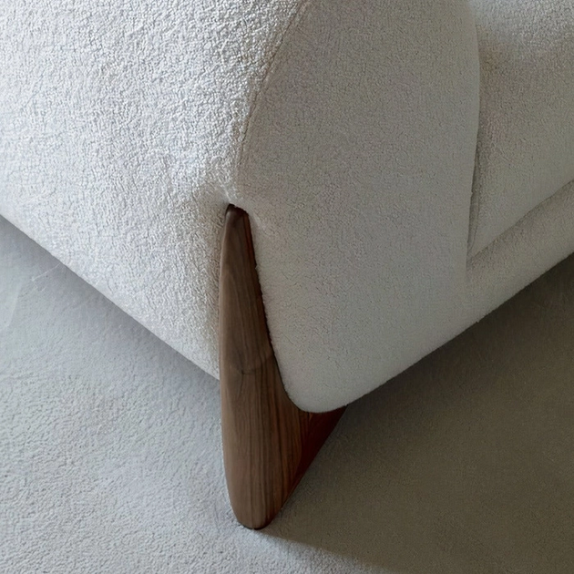 Antique Wood Hub Modern Classic luxury modern Sofa Set with Ottoman Off White and other Colors Combo Boucle Fabric