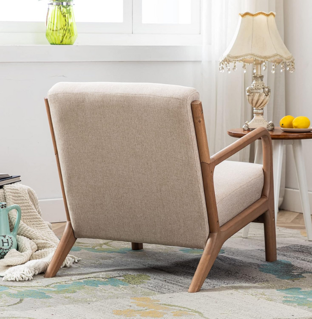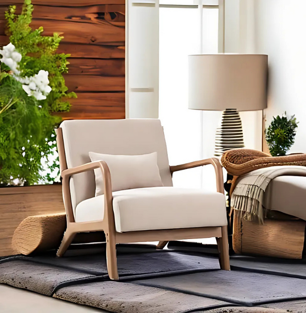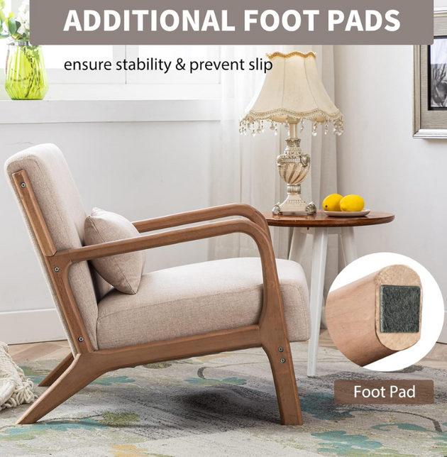 Stylish Modern Farmhouse Accent Chair: Plush 25.5" Wide Chenille and Sturdy Teak Wood Solid Frame for Living Room