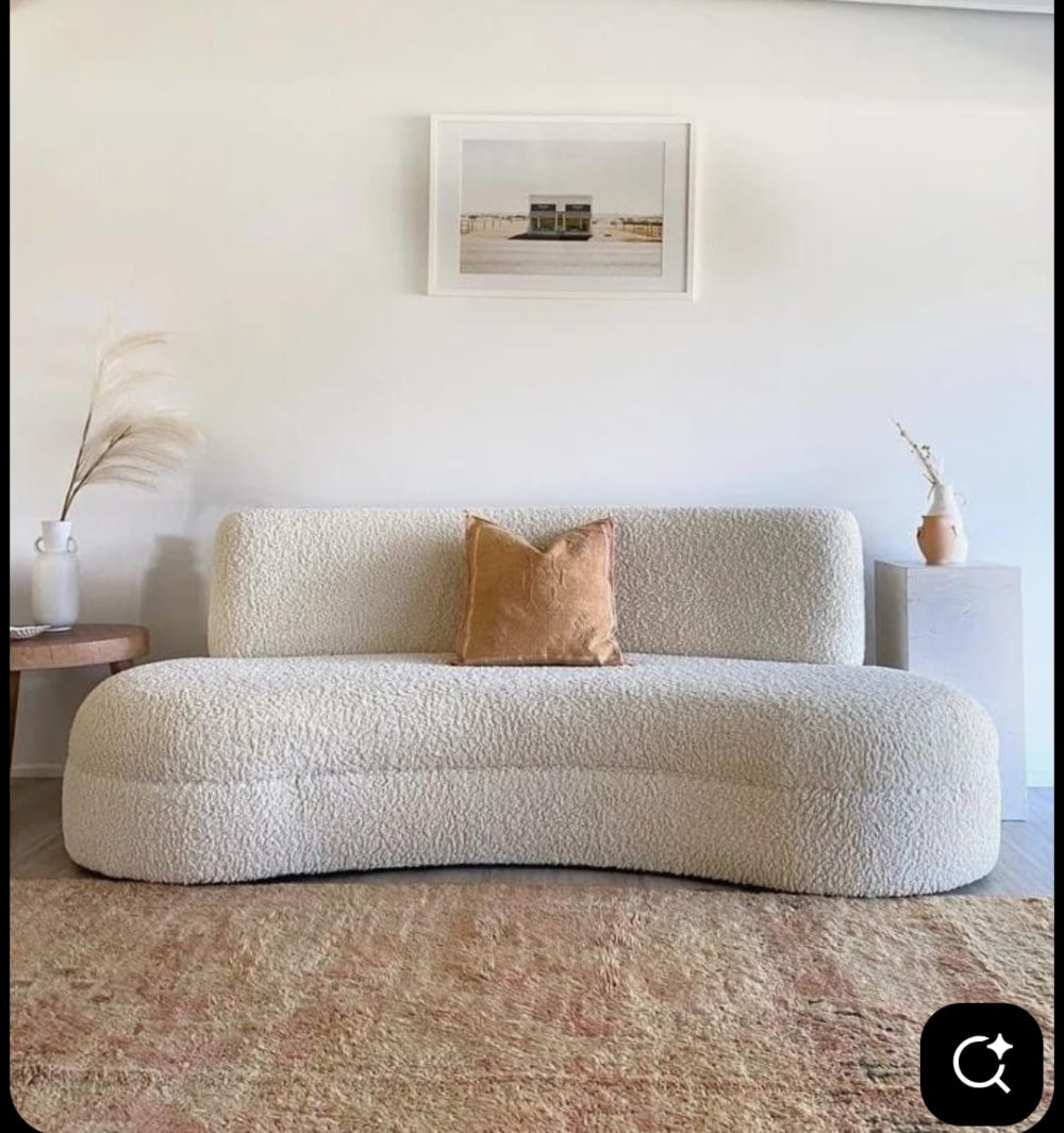 Elevate your living space with this luxury curved bouclé sofa, a perfect blend of modern design, comfort, and understated elegance. Crafted for contemporary homes, this statement sofa features a soft sculptural silhouette that instantly enhances the aesthetics of any living room, lounge, or studio space.