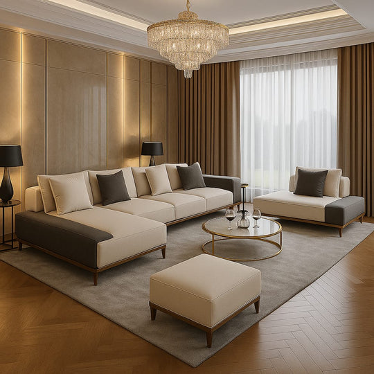 • Set Includes: 3-seater sofa (200 cm), single-seater chair (100 cm), ottoman (71x55x40 cm)