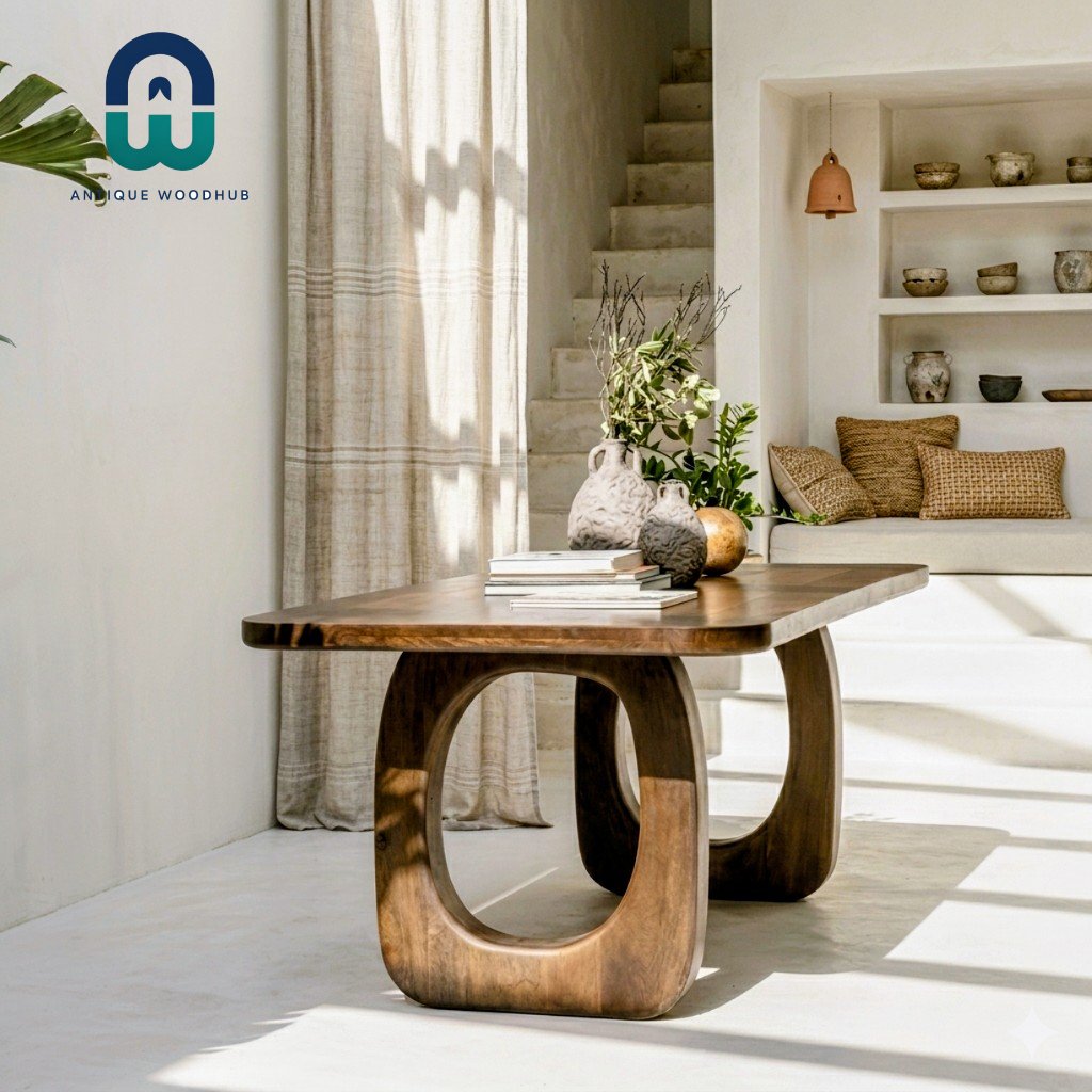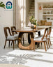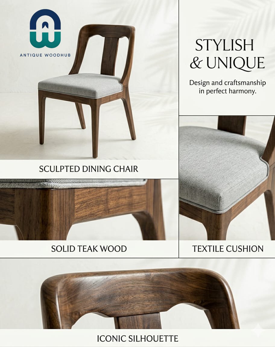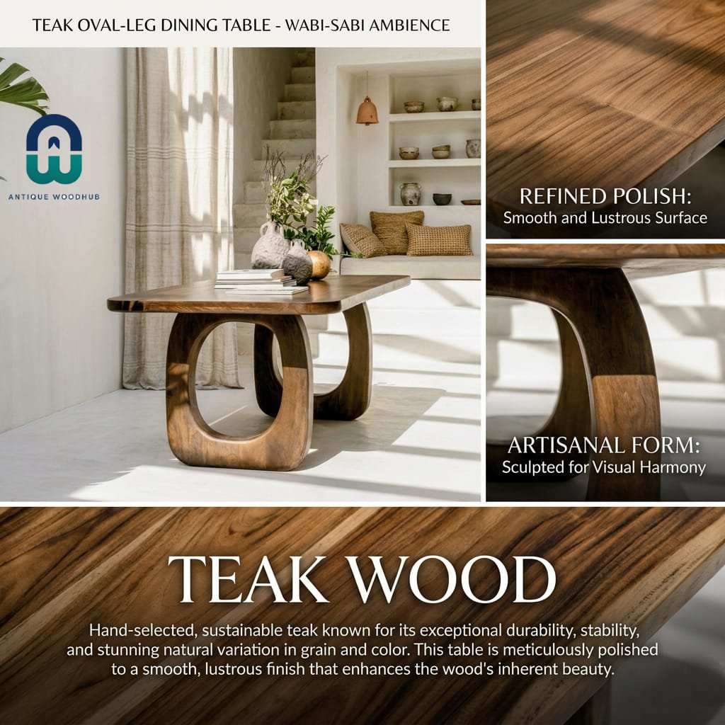 Crafted from high-quality teak wood, this dining set is built for durability, strength, and long-lasting performance. The table showcases a unique oval-leg sculpted base, creating a bold and artistic centerpiece that elevates any dining space.