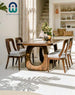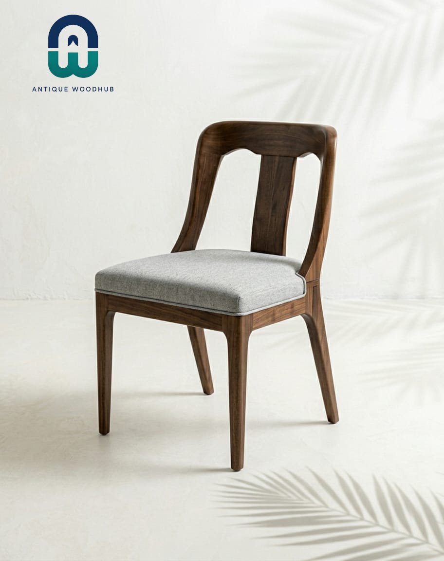 Paired with ergonomically designed solid wood dining chairs, each seat features a comfortable upholstered cushion, ensuring both style and everyday comfort. The clean lines and smooth curves reflect a modern aesthetic while maintaining a warm, natural feel.